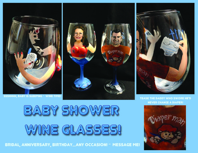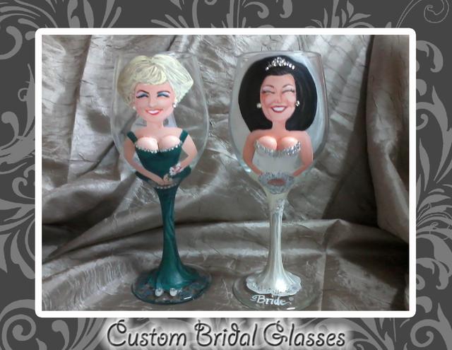 I can paint any portrait on any surface! These are samples of the glasses I have created for many occasions, not just weddings!